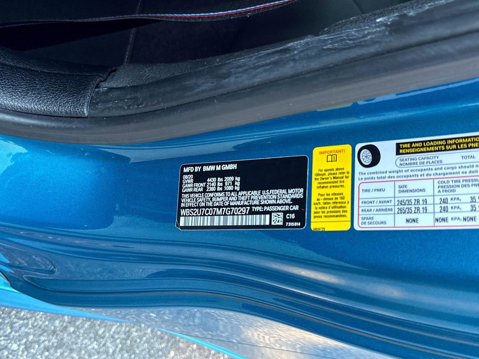 - Tires: 245/35R19 Fr & 265/35R19 Rr Mixed Perf